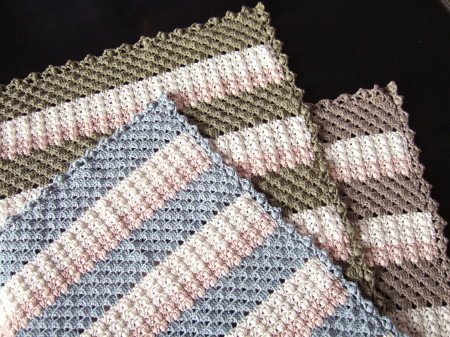 以前紹介したおくるみ、無事3枚編み上げましたよー