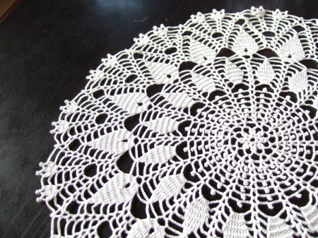 このドイリー、途中まで丸く編んで