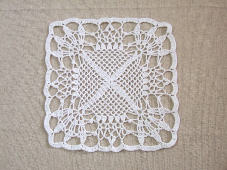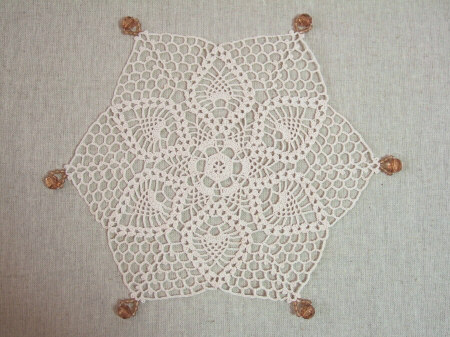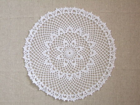 変形パイナップル編みのドイリー。