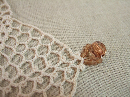 ベージュの糸&茶色のビーズを使って編んでみました♪