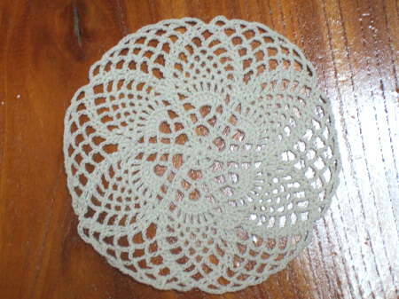 指定より細い糸で編んだのでコースターサイズになりました。