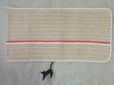 ベージュの地に赤とアイボリーのラインが入った