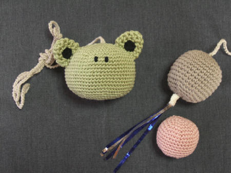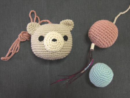 どの編みボールも中綿にたっぷりまたたび入りです。