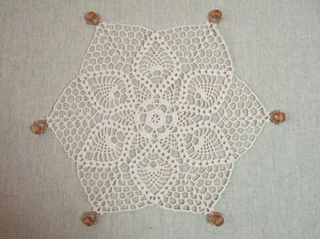 ベージュの糸&茶色のビーズを使って編んでみました♪