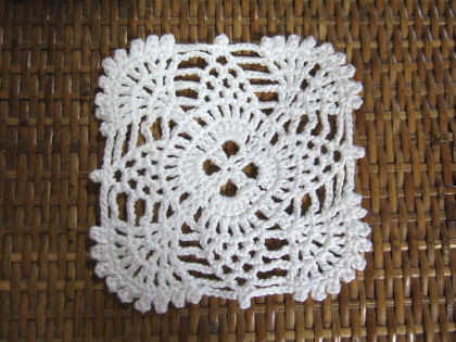初パプコーン編み入りドイリーです。